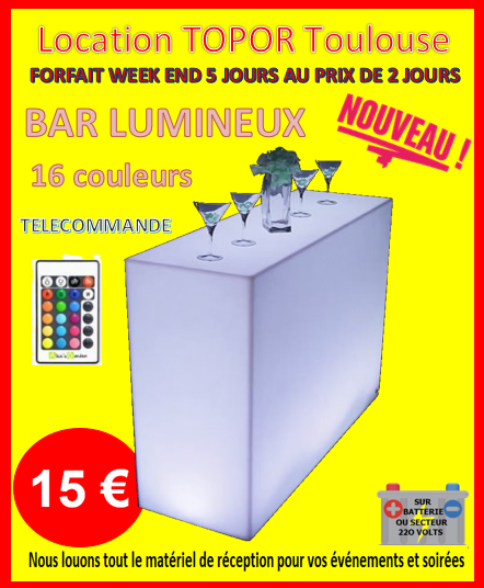 Location TOPOR Toulouse, professionnel dans l’évènementiel depuis 15 ans, est à votre disposition pour vous conseiller et sélectionner le meilleur produit pour votre manifestation tout en maitrisant votre budget.